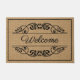 Custom Welcome Antique Floral Scroll Faux Burlap Doormat