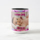 Celebrate a new arrival with this charming, customizable "Welcome Baby" two-tone coffee mug. Featuring a vibrant pink and purple balloon background and a dedicated photo placeholder for your favorite newborn portrait, this mug makes a thoughtful gift for new parents, grandparents, or godparents.