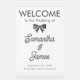 A perfect balance of soft script and bold serif typography makes this welcome sign both stylish and versatile. Ideal for modern weddings with a romantic edge.
