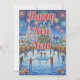 Send a magical wish with this artistic holiday card depicting a snowy town celebration under a sky of colorful fireworks. A nostalgic and heartwarming choice for the New Year