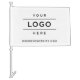 Drive attention to your brand with this custom white car flag featuring a clean logo placeholder with space below for your business website. Upload your company logo in any color or shape and customize all text fields. A standout branded promotional piece for parades, grand openings, dealership events, corporate rallies, and small business promotions.