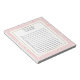 Personalized "To Do" notepad with white leaves on soft pink and a white background with gold trim. Text, font, font size, color, and placement are completely customizable.
