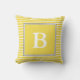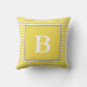 This yellow pillow has a striped pattern in the background. There's a customizable white initial in the center of a yellow square. Personalize this throw pillow with the recipient's monogram.