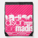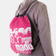 Custom White Name Pattern on Hot Pink Stripes Drawstring Bag
