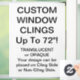 Window Cling, Size: 8.00" x 11.00", Style: Partial Transparent Design: No Underbase, Shape: Custom Cut, Display: Front of Cling