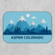 Customized blue mountain patch for your ski resort or Colorado mountain town for people who travel for skiing and winter vacation. This cool custom design features a cute drawing of snow capped mountains and a blue landscape. A great nature landscape for an outdoors loving family for their nature expedition. Great to promote your restaurant or travel shop.