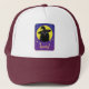 Add your slogan to a fun festive Halloween witchy painted black cat full moon purple vibes scary fun October spooky season customizable art design kitty love witching hour trucker hat. Get a fun black cat art cap today.
