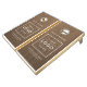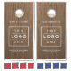 A classic rustic look for your brand — this custom business logo cornhole set features a brown wood grain background with crisp white text. Both boards display your company name above a clean logo placeholder, with space for your location, slogan, or website below. Upload your logo in any color or shape and customize all text fields. Cornhole bag colors shown are red and blue and can be modified. A polished branded yard game for corporate picnics, team building events, trade shows, and company parties.