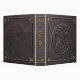 The embossed and leather elements are simulated in the artwork by the Creator. These elements will not be used in the making of this product.