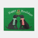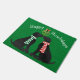 Personalized Festive Christmas Black Labs Holiday Dogs Kissing Under The Mistletoe! Festive cute holiday green doormat for black lab lovers!