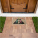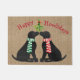 Personalized Festive Christmas Black Labs Holiday Dogs Kissing Under The Mistletoe! Fun cute holiday doormat for black lab lovers!
