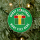 Custom xmas box gift Christmas tree ornament. Cute design with modern typography template. Add your own personalized greeting, funny quote, family name, monogram name etc. Fun Holiday gift idea for friends, family, mom, dad, coach, kids, boy, girl, trainer, teacher, coworker, boss etc. Make your own xmas tree decoration. Includes sparkly gold string. Happy Holidays! Print on one or both sides. Upload your own photo on the back optionally.