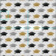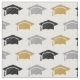 Neat row of three graduation caps in black, gold and silver over a subtle gray pattern. Perfect for use in a graduation or tshirt quilt as a gift for the senior. Neutral colors pair well with any school color fabrics. Matching products available.