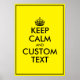 Custom yellow keep calm wall poster template. Create your own funny keep calm and carry on quote. Cool wall decor for bedroom, office, pub, bar, cafe, restaurant, dorm etc. Modern typography with crown and stylish border. Colors can be changed.