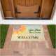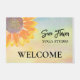 This botanical Yoga Studio Door Mat is decorated with a yellow sunflower on a watercolor background.