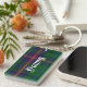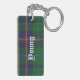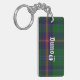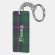 Stylish key chain done in the green, blue, red and yellow Young Scottish tartan plaid pattern. Bold white old world style text, on the front and back, is ready to personalize for yourself or as a great gift idea.
