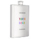 Custom Fonts and Colors - Flasks with Your Logo Name Website Promotional Personalized Company Office Promotion Business or Personal Customizable Colors and Text Modern Flask / Gift - Add Your Logo - Image - Photo or QR Code / Name - Company / Website or E-mail or Phone - Contact Information / Address - Resize and Move or Remove / Add Elements - Image / Text with Customization Tool. Choose / Add Your Favorite Background and Text Colors / Fonts / Size.