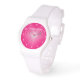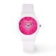 I only have one complaint. I ordered the watch with clear case and strap, and what was sent was white case and strap. I'm going to keep it because 1) it looks very nice in white, and 2) it would take too long to get a replacement made and sent in time for my occasion. Aside from the mix up with the color, the watch does look very good in white. The purple dial is actually sparkly which did not show in the online images. That was a nice surprise. If you like Swatch watches this is very similar to those. It's 33.6mm in diameter, 10.5mm thick, and 40.6mm lug to lug. Stainless steel case back says 3ATM/30m WR, so no swimming or showering or submerging this one. If you like Woodstock, this is a great choice.