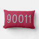 Big bold lettering zip code in heather blue on cardinal red pillow. Personalized decorative pillow that will symbolize your home and your place in the world. Leave as is if you live in Los Angeles, CA and your zip code is 90011 or easily personalize it with your own zip code or any significant custom number or short custom text. You can also use it as a fun personalized housewarming gift.