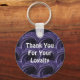 Express your appreciation to your loyal customers with a keychain featuring a modern abstract pattern. This thank you sticker is adorned with layers of overlapping circles with a swirled purple and black pattern. "Thank You For Your Loyalty" appears in the center in white font and can easily be customized if you desire.