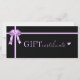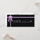 Make a lasting impression with this sleek and stylish gift certificate featuring a luxurious black-purple, complemented by a modern black ribbon and bow design. Perfect for various businesses, including beauty salons, spas, and personal care services, this certificate allows for easy customization of essential details such as: