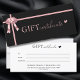 Make a lasting impression with this sleek and stylish gift certificate featuring a luxurious black-pink, complemented by a modern black ribbon and bow design. Perfect for various businesses, including beauty salons, spas, and personal care services, this certificate allows for easy customization of essential details such as: