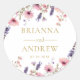 Personalized wedding stickers feature a beautiful floral design, pink & purple, can be personalized with your names & date.