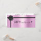 Make a lasting impression with this sleek and stylish gift certificate featuring a luxurious pink, complemented by a modern black ribbon and bow design. Perfect for various businesses, including beauty salons, spas, and personal care services, this certificate allows for easy customization of essential details such as: