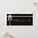 Make a lasting impression with this sleek and stylish gift certificate featuring a luxurious black-gold, complemented by a modern black ribbon and bow design. Perfect for various businesses, including beauty salons, spas, and personal care services, this certificate allows for easy customization of essential details such as: