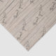 Thank you tissue paper for a business. Black text with a tiny heart is patterned over a wood grain background design in light brown. Tissue paper comes in three sizes.