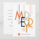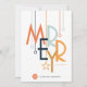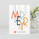 This modern era postcard features a colorful art deco style font with abstract ornaments on a white background with a spot to insert you company logo.