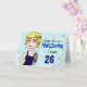 A customisable birthday card featuring a cartoon alternative woman with short blond hair, skull earrings and cupcake tattoos, on a light blue background covered with doodles. The front reads "Today you are AWESOME I mean 26" and the inside says "Have a wicked sweet birthday!" You can customise all the text. Illustrations by Jojo Kneebone - Aka MuffinPuffART!