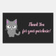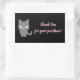 A customisable cute black Thank You rectangle sticker with gray cat to express your appreciation towards your customers for purchasing your products. Your customers will love these thank you stickers.