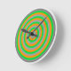Customisable wall clock with an abstract colourful concentric circle of different colours printed.