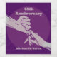 This design has a husband and wife with their pinky fingers locked together. This romantic couple are holding hands to celebrate their wedding anniversary. You can customise this pink and purple design with your own wedding anniversary date and names.