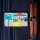 Serve up something special with this customizable 1950's Diner Luggage Tag. The cartoon drawing design features a red brick building with blue windows, gray double doors, and a white sign that says, "Diner" perched on the roof. In the parking lot, a second sign is on a pole. The sign has a turquoise background and a flashing red arrow pointing the way your Diner. Replace the name on the diner sign with your own! The sign has done its job because there is a bright yellow car with fins parked next to it. Even though we can't see them, the passengers of the car must be smacking their lips. A cute, young carhop is rollerskating her way to the car. Her brunette hair is in a bouncy ponytail. She is wearing a short, pink uniform with black trim and a white apron. Balanced on one hand, the carhop is carrying a black tray holding a giant hamburger and a refreshing, old-fashioned, glass bottle of soda. The background behind the diner is teal with light blue clouds and the silhouettes of cedar trees.The opposite side of the luggage tag is all ready for your contact information.