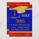 Customizable, 50 Year Class Reunion Invitations. Red, White and Blue with Gold Accents. Click "Personalize" Button and Type in Your Text or Delete. To Customize Further, CLICK "Edit using DESIGN TOOL." Here you can Delete any Design Parts, such as the two Red Design and CHANGE the BLUE Background COLOR and TEXT COLORS. You can add your own images, change font styles, colors, size and move. You can not change the 50th, Class Reunion, Gold Trim or Gold Graduation Cap, but you can DELETE THEM and Add Your Designs or Add Text.