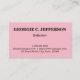 This basic, customizable, and simple business card design features a pale pink background. It could be used by a professional such as a solicitor, counsellor at law, lawyer or advocate. The name, profession and contact details can be personalized.