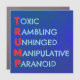 Show where you stand with this customizable T.R.U.M.P. acronym design, a bold statement for those who see through the chaos. Featuring the default words Toxic, Rambling, Unhinged, Manipulative, Paranoid, this design lets you keep it as-is or swap in your own words to create the perfect anti-Trump message.