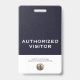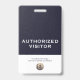 Keep your facility secure with these customizable Authorized Visitor badges. The modern design features a customizable brushed gold logo and text, with the important message "Unauthorized badge removal is strictly prohibited" displayed at the bottom. These badges are perfect for identifying authorized visitors and ensuring they have permission to be in restricted areas.