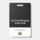 Keep your facility secure with these customizable Authorized Visitor badges. The modern design features a customizable brushed gold logo and text, with the important message "Unauthorized badge removal is strictly prohibited" displayed at the bottom. These badges are perfect for identifying authorized visitors and ensuring they have permission to be in restricted areas.