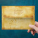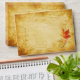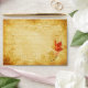 This autumn maple leaves A-7 invitation envelope has a matching 5"x7" wedding invitation available for purchase (see below). The return address on the back flap of the envelope is fully customizable. To change it, use the personalize option. For more extensive text changes, such as changes to the font, font color, font size, and/or text layout, click on customize it. A fall maple leaves design in red, orange, yellow, tan, and brown situated on an aged parchment background. It would work well for an autumn wedding.