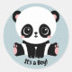 Blue Panda "It's a Boy!" stickers. Perfect for baby shower invitations. Text can also be changed to a name for children's stickers.