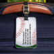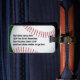Customize this classy luggage tag with the name of your favorite team as on one side and with your contact information on the other. The white baseball is nicely set off by the dark green background.