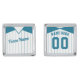 Easy to edit customizable baseball / softball jersey cufflinks, just use the boxes to the right of the image to insert your own choice of team name on the front, and player name and number on the back. The design of this jersey has teal pinstripes, v-neck collar, and trim. The background color can be edited, just click on CUSTOMIZE.
