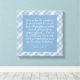 This artwork features a tranquil dusty blue plaid background that evokes a sense of comfort. Overlaying this soothing backdrop are the empowering words from Isaiah 41:10 and 13, presented in elegant typography. The verses, emphasizing strength and divine support, stand out in a contrasting color, inviting reflection and inspiration. This piece is a beautiful reminder of resilience and faith, making it a meaningful addition to any space. The Bible verse is customizable so you can choose your favorite verse.