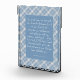 This artwork features a tranquil dusty blue plaid background that evokes a sense of comfort. Overlaying this soothing backdrop are the empowering words from Isaiah 41:10 and 13, presented in elegant typography. The verses, emphasizing strength and divine support, stand out in a contrasting color, inviting reflection and inspiration. This piece is a beautiful reminder of resilience and faith, making it a meaningful addition to any space. The Bible verse is customizable so you can choose your favorite verse.