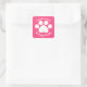 These stickers display a white paw print on a pink background with the text of your choice. They are great for paw print themed, dog themed, cat themed, or animal themed birthday parties.
