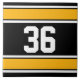 Great item for the Pittsburg fan in your life. Black, gold, and white striped football jersey style stripe design with customizable text line in white which we placed the number of a favorite team player. The colors we have chosen for this series of tiles or trivets will match your favorite teams colors, we just can't mention them here. Customize each tile with your favorite player's number to create your own fan wall! Perfect for football fans.