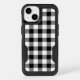 Protect your iPhone from drops with a shock-absorbing OtterBox case featuring a classic black and white buffalo plaid with a window to showcase the Apple logo on the back of the iPhone. Black, white, and grey squares form a bold, checked plaid or gingham pattern.